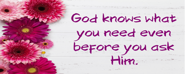 And does it seem as if this devotion was meant to be on this particular day . . . THAT’S GOD . . . He knows what you need even before you ask Him.